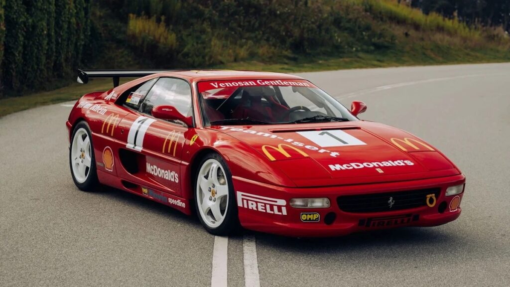 The F355 race car is powered by a 3.5-liter V-8 making 375 horsepower. The F355 race car is powered by a 3.5-liter V-8 making 375 horsepower.